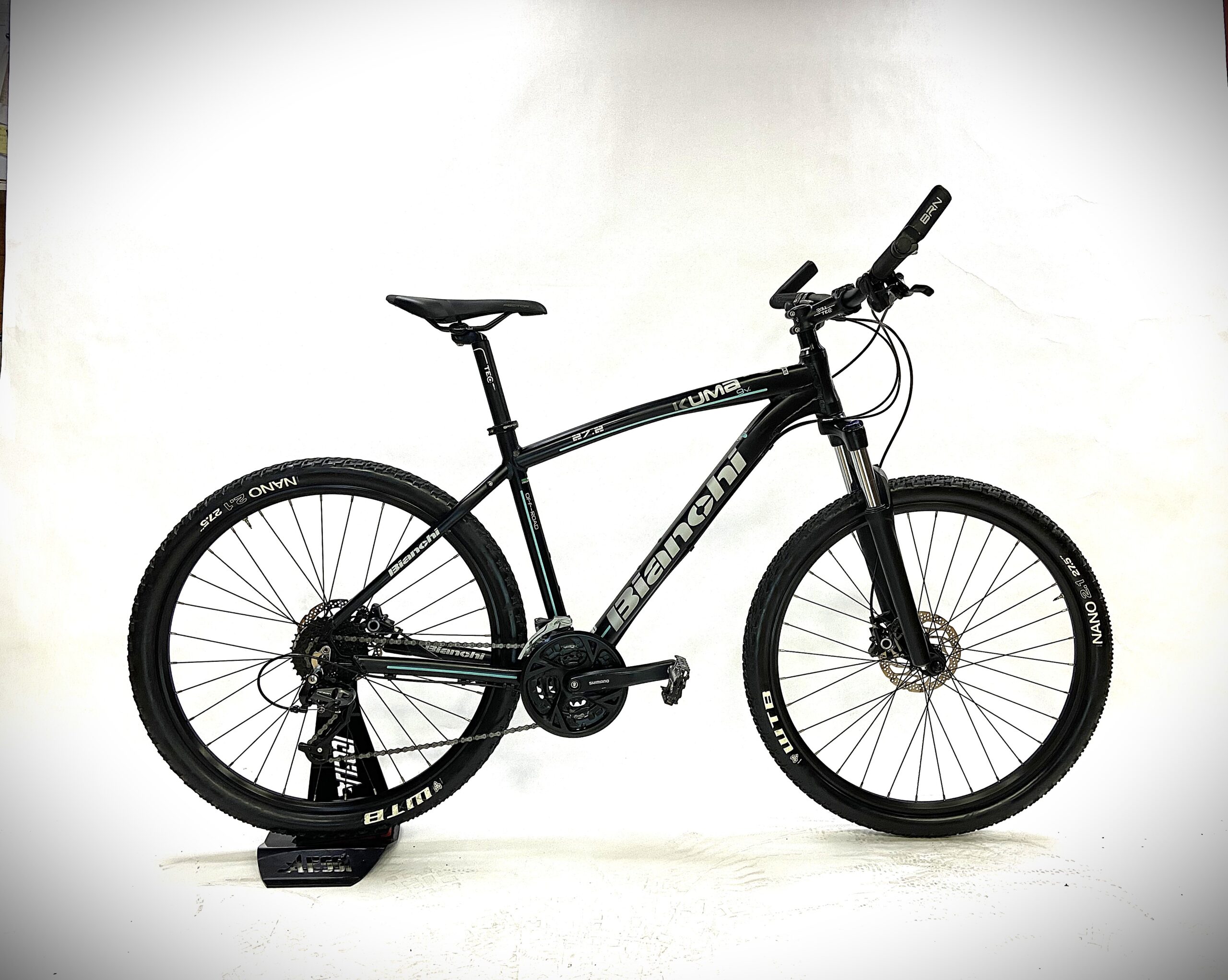 Telaio: Geometria Kuma da 27,5″, alluminio AL6061, supporti per portapacchi e parafanghi.